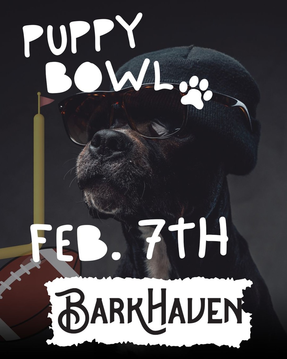 Itâs Puppy Bowl vibes all day at BarkHaven. đ¶đ Weâll have the Puppy Bowl playing on our screens, footballs in the dog yard for the pups to enjoy, and a referee on duty for some lighthearted fun.