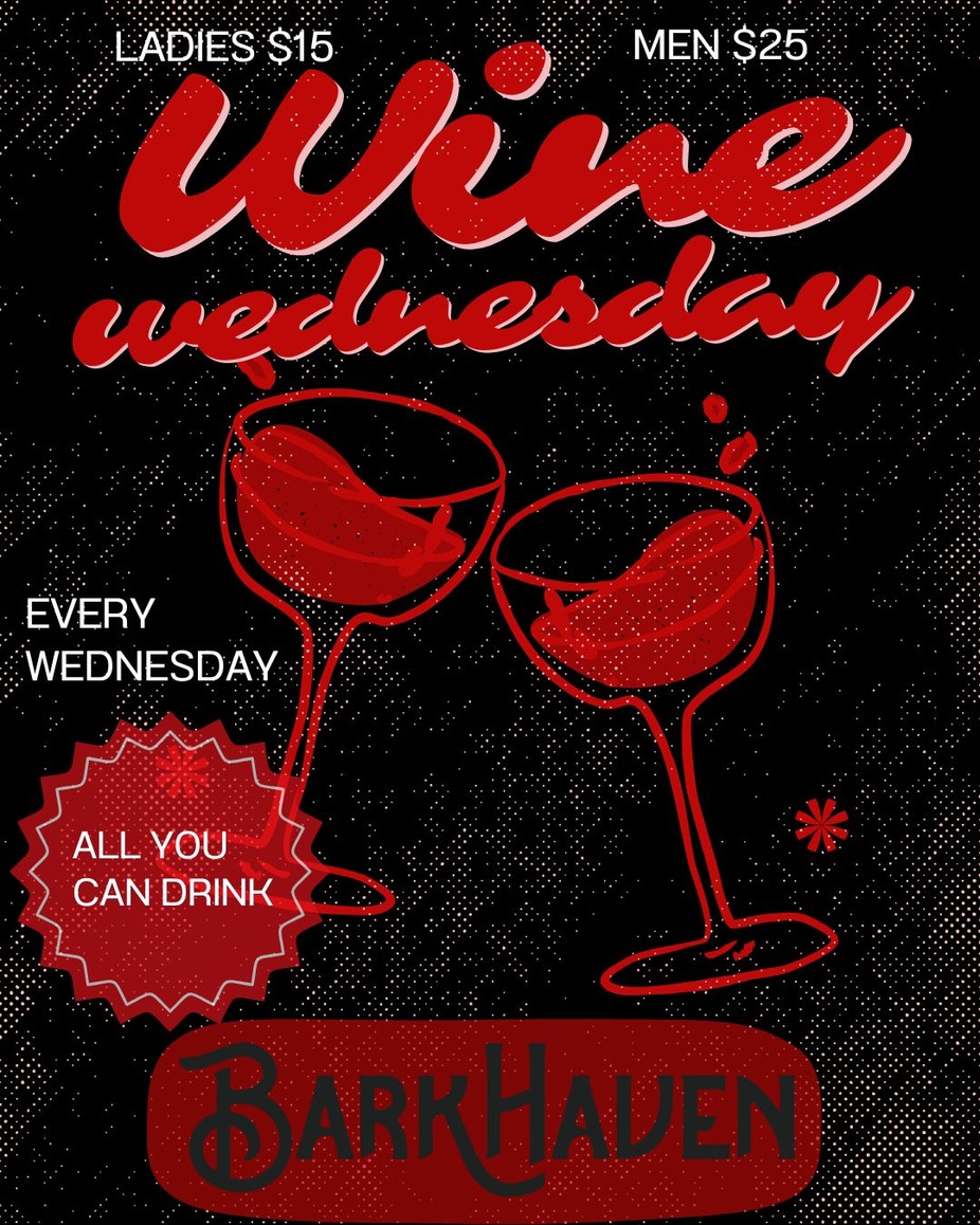 Midweek plans, solved. Wine Wednesday at BarkHaven is the perfect way to unwind with great wine, relaxed vibes, and a dog-friendly atmosphere.