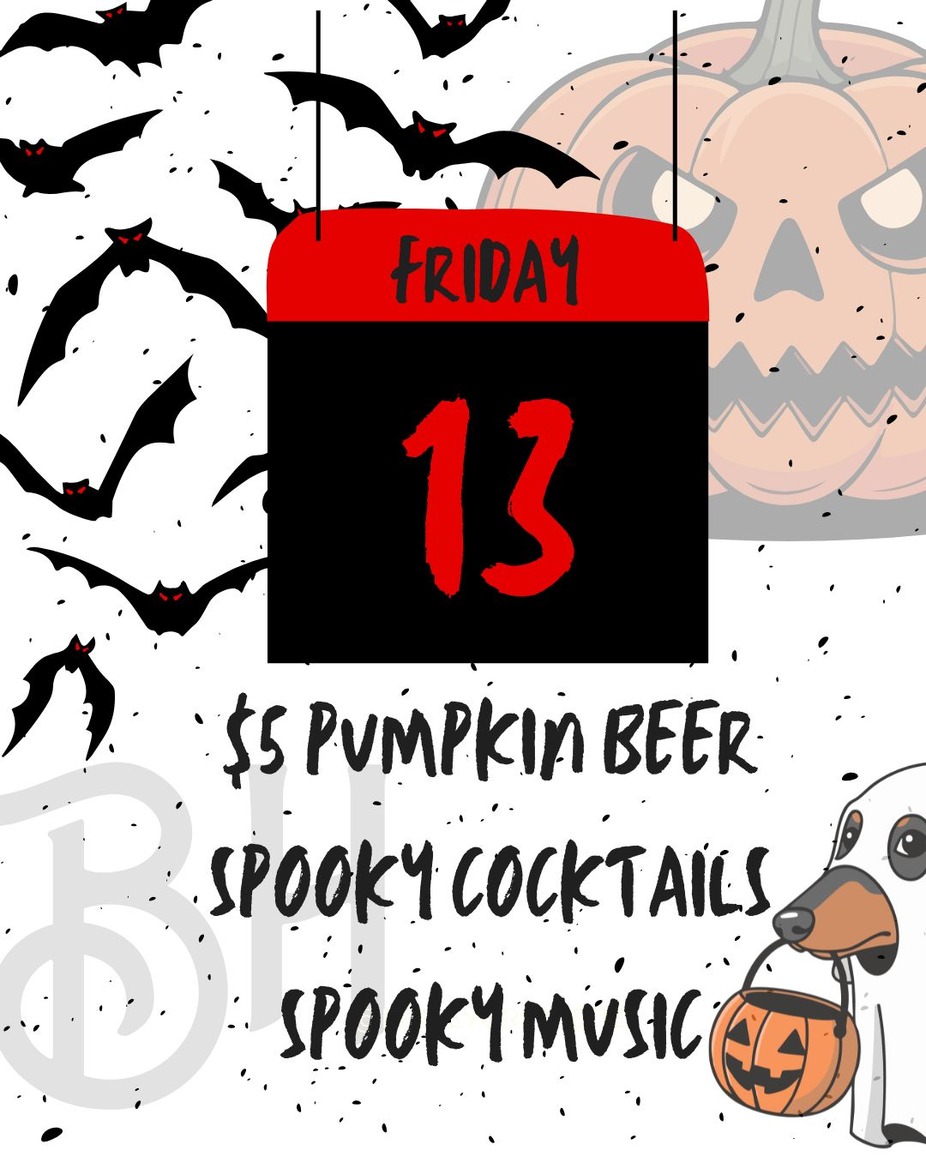 Get spooky with us on Friday the 13th for a frightfully fun night at BarkHaven. Sip on $5 pumpkin beers, enjoy spooky themed cocktails, and vibe to Halloween inspired music all night long.