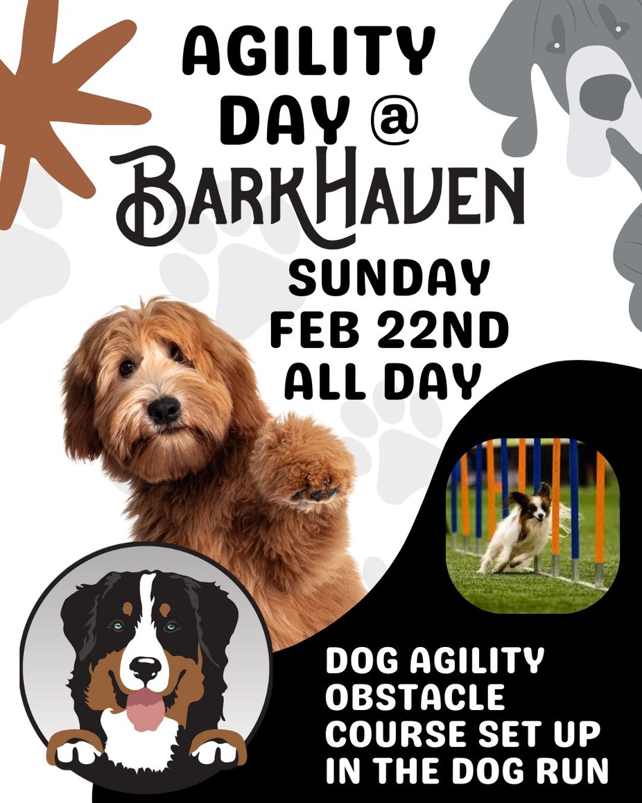 Let your pup run, jump, and show off their skills at Agility Day at BarkHaven. Weâre setting up a dog agility obstacle course in the dog run for a full day of movement, enrichment, and tail-wagging fun.